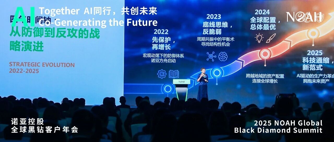 At the "AI Together, Co-Generating the Future" 2025 Noah Global Black Diamond Summit held in Macau, Norah Wang, Noah Co-Founder and Chairwoman, delivered a keynote speech titled "From Chaos to Clarity: Building a Global Operating System for Wealth Management." Drawing on over 20 years of global observation, the specialized experience of the Chinese community, and proven asset allocation wisdom, she pointed out that the next decade represents a critical period for global Chinese family wealth management and shared a future-focused strategy specifically designed for Noah’s global Black Diamond clients.