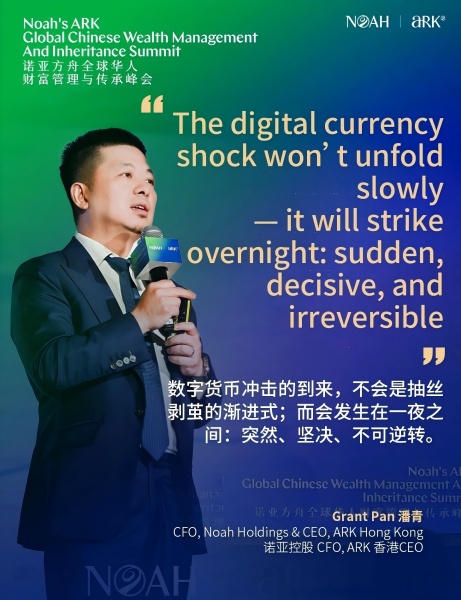 In the panel's introductory keynote, Grant Pan, CFO of Noah Holdings and CEO of ARK Hong Kong, opened with a data-driven analysis, unveiling the core investment logic behind digital currencies.